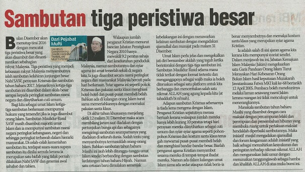 | 1 | 09/12/2016 (Jumaat) | Sinar Harian | "Sambutan tiga peristiwa besar" |