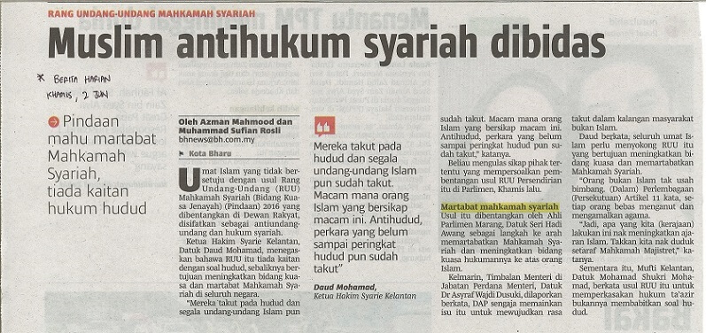| 5 | 02/06/2016 (Khamis) | Berita Harian | "Muslim antihukum syariah dibidas" |