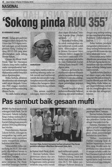 | 3 | 13/10/2016 (Khamis) | Sinar Harian | "Sokong pinda RUU 355" |