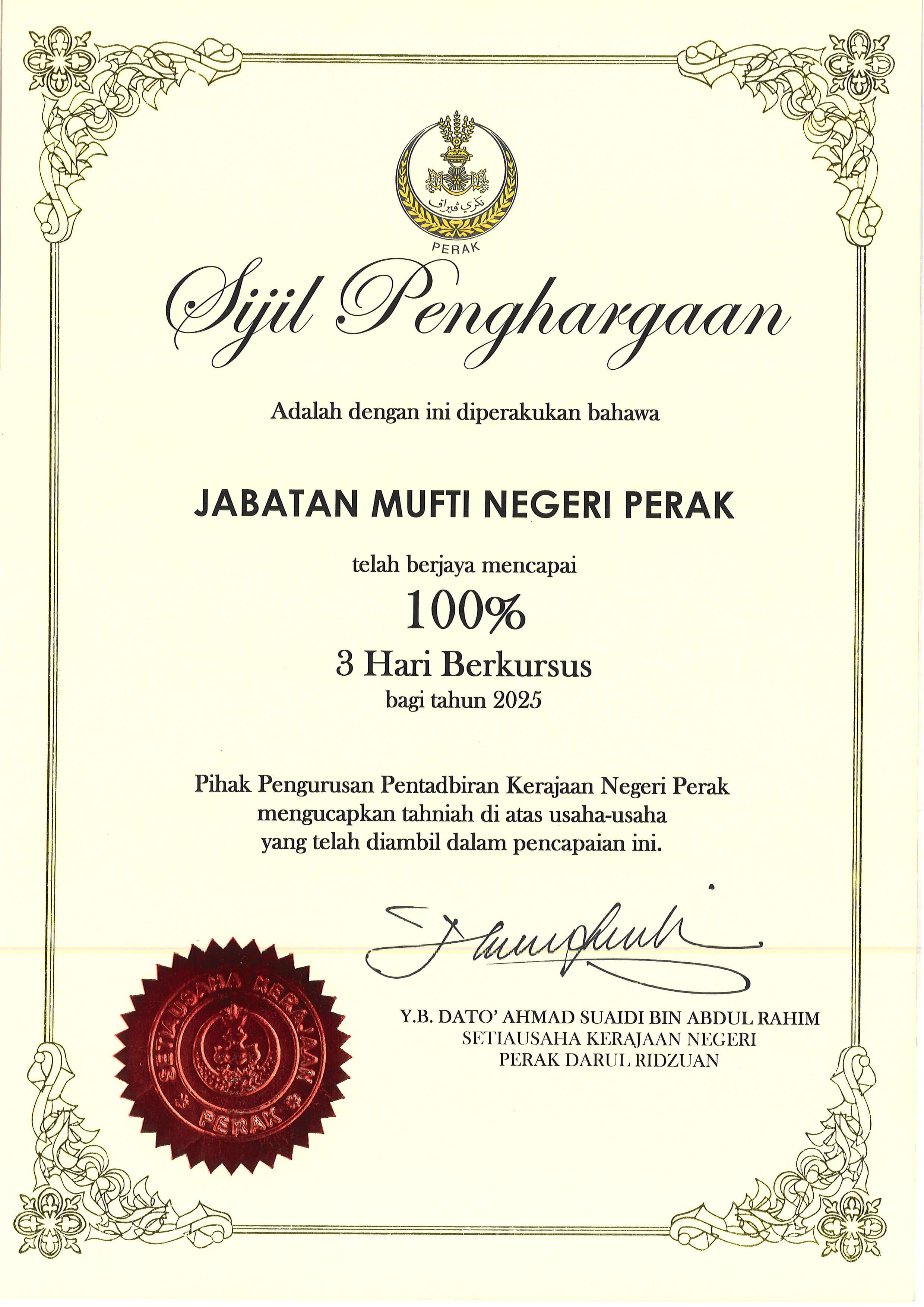Sijil Pencapaian 100% 3 Hari Berkursus Bagi Tahun 2025